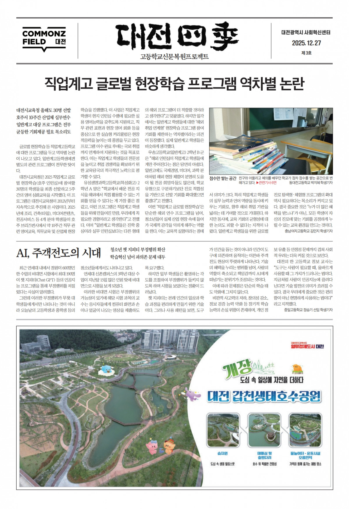 [2025-12-27] 3호 페이지 정보 작성자대전사회혁신센터 | 작성일2025-12-29 09:55:12 list_alt목록 제목[2025-12-27] 3호 작성자대전사회혁신센터 작성일2025-12-29 09:55:12 조회 14 첨부파일 1 학교신문-01면 3_합치기_1.jpg - (1.4M) ( 0회 다운로드 ) 첨부파일 2 대전四季 3호.pdf - (33.6M) ( 0회 다운로드 ) 본문 첨부파일 대전四季 3호.pdf (33.6M) 0회 다운로드 | DATE : 2025-12-29 09:55:12 다음글[2025-01-19] 2호